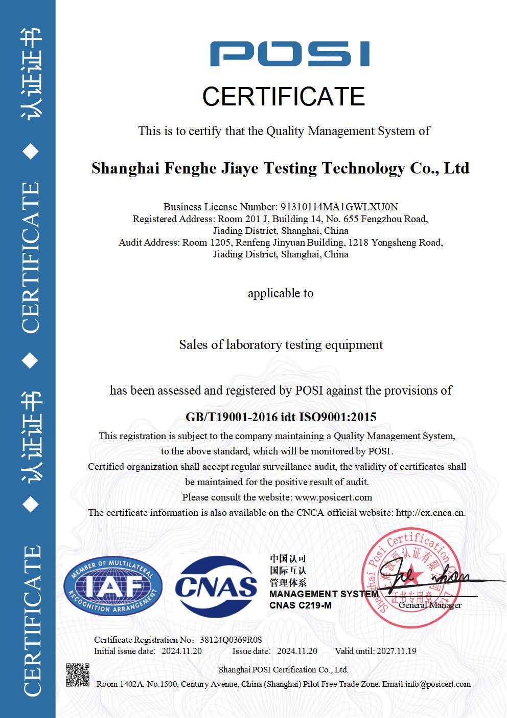 質量管理體系認證證書